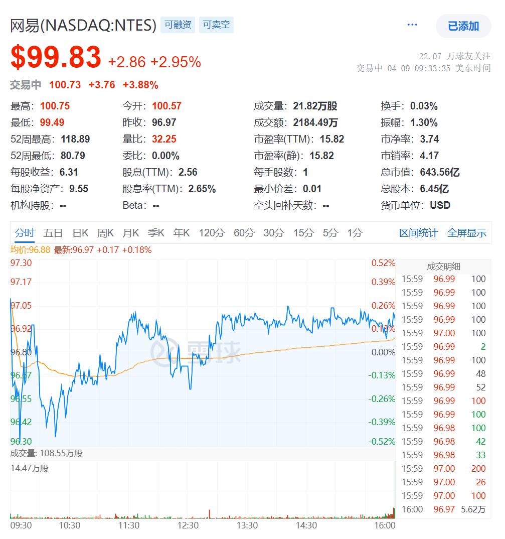 热门中概股中,网易开盘涨 3%,其此前确认了暴雪国服将在 4 月 10 日官宣;小鹏汽车大涨超 6%,蔚来涨近 3%。