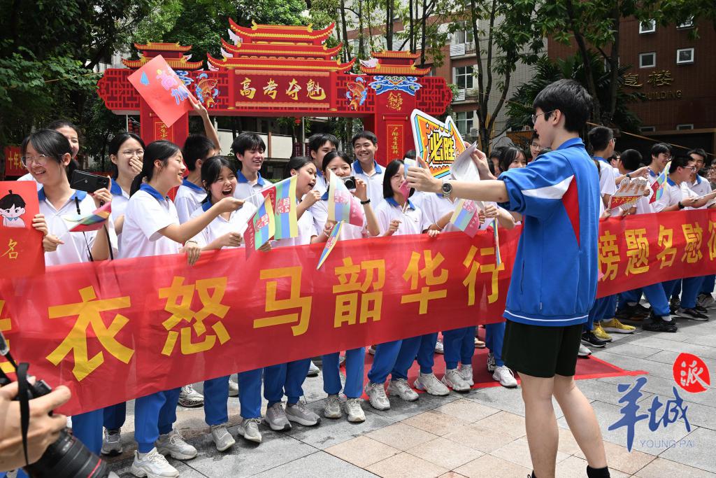" 我们都将经历高考。今天,我们在这里为高三学长学姐送考,首先是要为他们加油助威,让他们感受到‘握笔的手,有我们的力量’,我们跟师兄师姐都是共同体;同时,这也是一种传承,高三的接力棒,终究会传到我们手上,经历了今天的壮行仪式,我会更加积极地利用好时间,更主动地安排好自身的学习和生活。" 现场一名同学说。