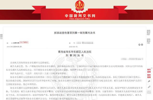 近日,该案的一审判决书在网上公开,郝某因犯故意伤害罪被判处有期徒刑 10 年。