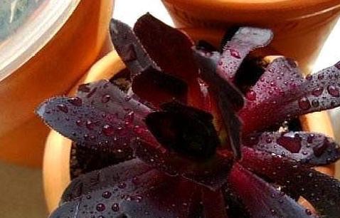 尖叶黑法师,它的叶片比较的修长,叶片两侧翘起,整体为一种冷艳的深紫红色。