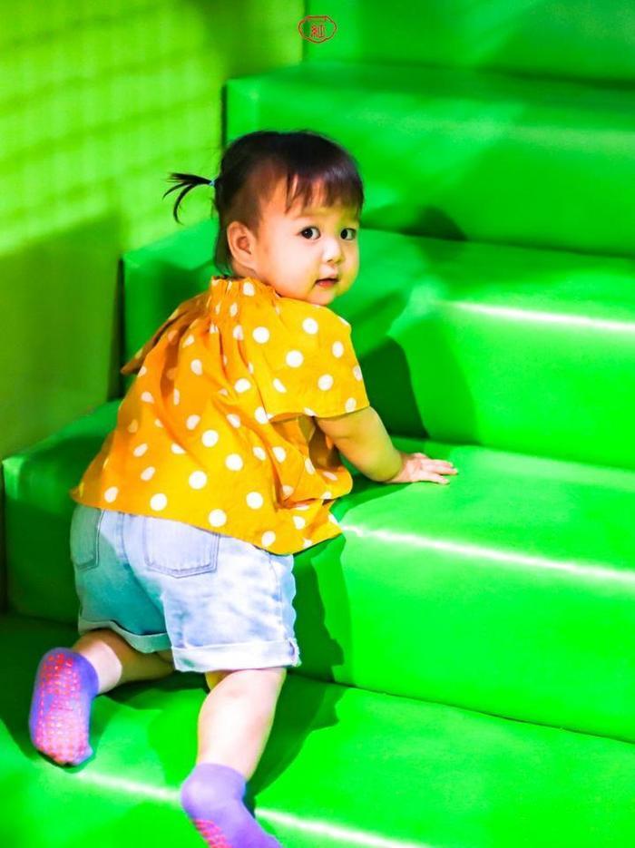 孩子太小没有玩90°垂直滑滑梯,但其他几个都被儿子玩遍了,开始的时候他还有些胆怯,需要爸爸陪着一起滑,但玩多了,他胆子就大了,开始自娱自乐了。而女儿毕竟太小,现在还只能在这里爬一爬,胖胖的身体一扭一扭太可爱了,别看女儿小,她特别独立,胆子很大,自己玩的也很开心,可以说这里是大人培养孩子勇气的绝佳训练场。