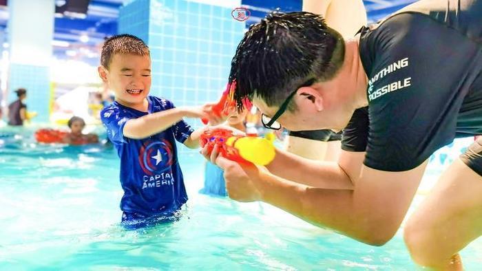 儿子跟爸爸去玩滑滑梯了,女儿只能在30cm的浅水区里玩玩水。儿子跟爸爸打水仗,女儿坐在水中跷跷板上倒是挺合适。不得不说,这个水乐园不仅恒温,不仅只有30cm浅,更重要的是这绝对是一个让大人和孩子更加亲密的地方,我想这就是亲子旅行的意义,我们跟着孩子学习成长,孩子跟着我们愉快长大,多鼓励他们,他们会变得更加勇敢。