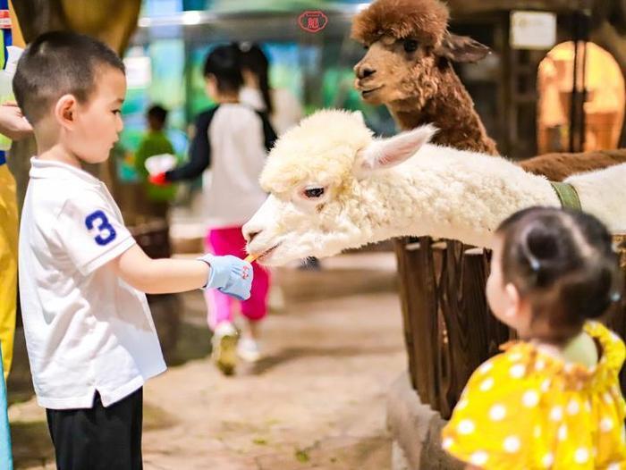 除了滑梯乐园和VR动感乐园以外,一楼还有一个地方不能错过,就是萌宠乐园,这里居然还有可爱的小动物可以亲近。不过萌宠乐园在入口外面,出去的话需要在检票口绑一个手带在胳膊上,就可以出入啦。萌宠乐园里有羊驼、小浣熊、绿皮鹦鹉、小刺猬、小仓鼠、长耳兔等50多种小动物。在这里我们可以喂小动物哦,尤其是羊驼,可以说是这里的网红动物了,看到毛茸茸的羊驼,两个娃简直疯了,争先恐后的喂养起来。这时宝燕乐园工作人员递上的手套,让我真切感受到了他们的用心。哪个妈妈舍得孩子发生意外,毕竟都是我们的心头肉啊。