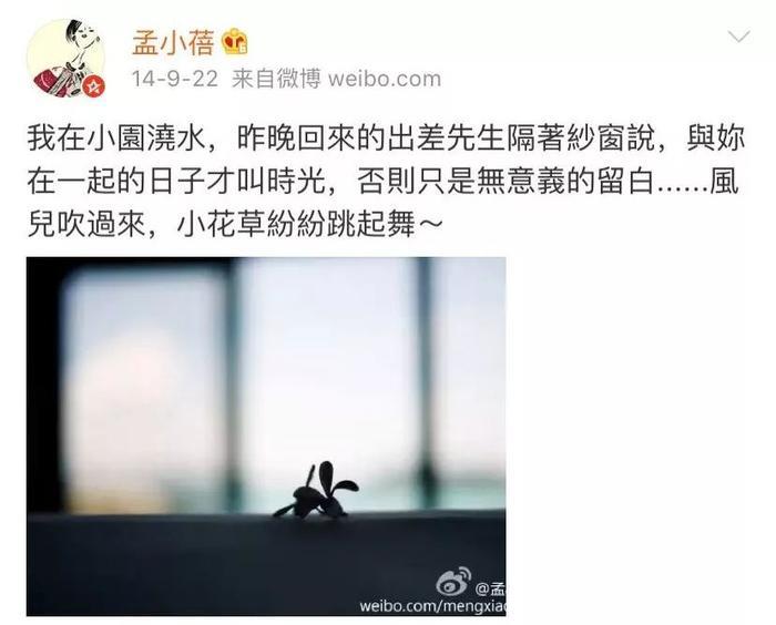 但在孟小蓓的微博里,偶尔流露出的幸福,已经足够羡煞旁人。