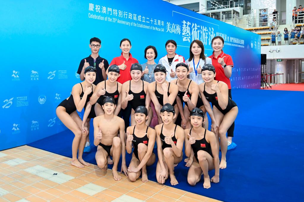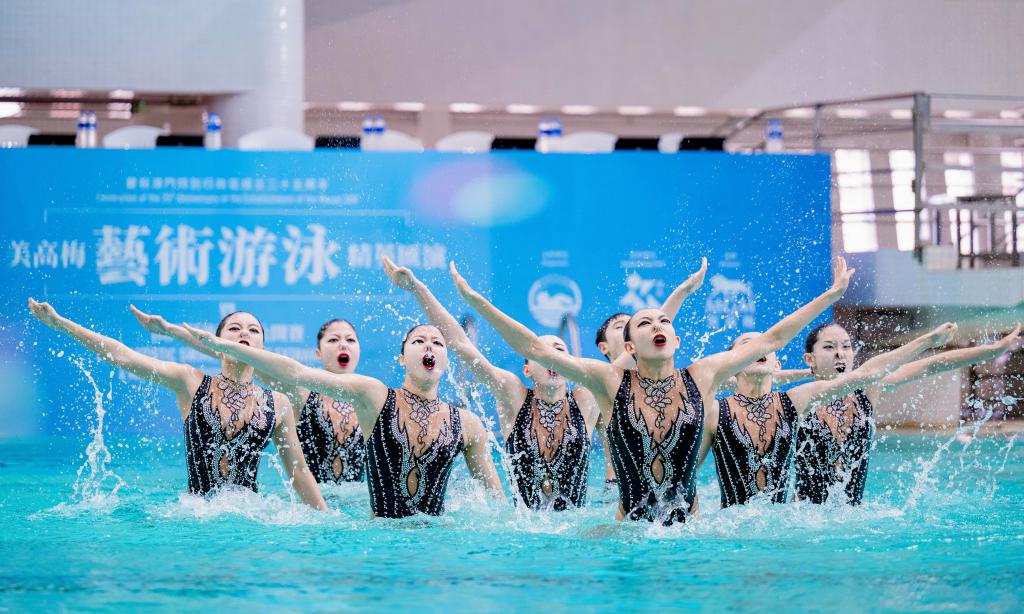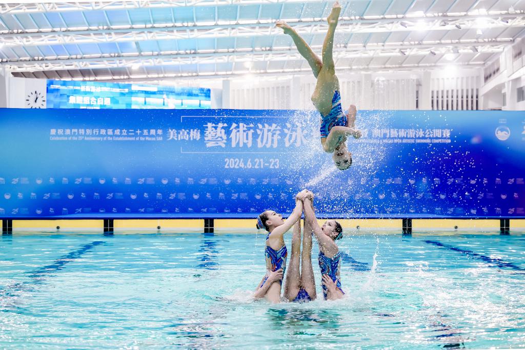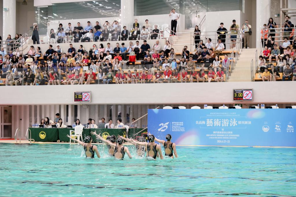 6 月 22 日,澳门体艺文旅盛事 " 庆祝澳门特别行政区成立 25 周年—— 2024 美高梅艺术游泳精英汇演暨澳门艺术游泳公开赛 " 在氹仔奥林匹克游泳馆正式拉开帷幕。