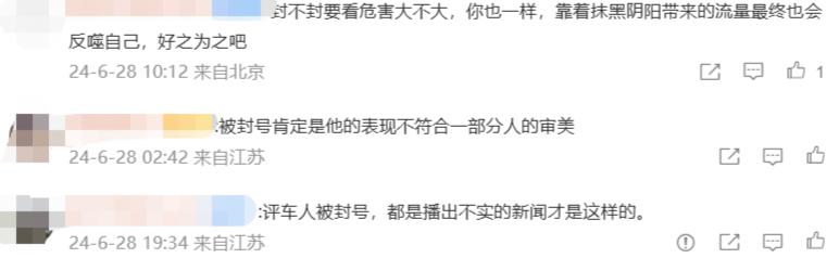 " 评车人被封号,都是播出不实的新闻才是这样的。 "