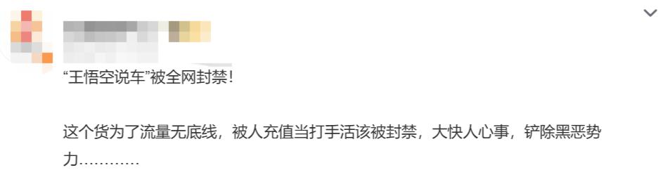 同样的车评人, " 王悟空说车 ", 也被封禁了,他全网有 200 万粉丝左右。