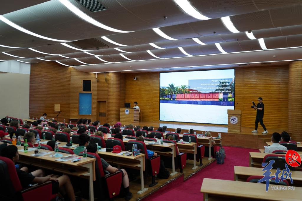 7 月 3 日,在广东外语外贸大学白云山校区图书馆,八十多名来自英国五所学校的中学生们齐聚一堂,举行英国 " 中文培优 " 项目来华夏令营开班仪式。未来 11 天,他们将深入参观广州,在中方中文老师和语伴的帮助下学习中文、应用中文,提升中文语言交流能力,同时加深对中国传统文化和现代社会的了解。