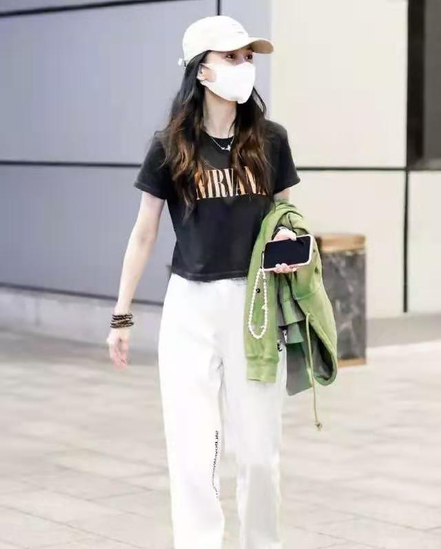 “短上衣+高腰裤”是一种有着显著显高效果的穿搭方式,Angelababy杨颖这样穿,看起来更高了。显高的同时,气场也变强了。