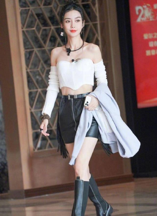 “Angelababy杨颖”气质真绝!穿抹胸上衣配超短裙,尽显细腰长腿