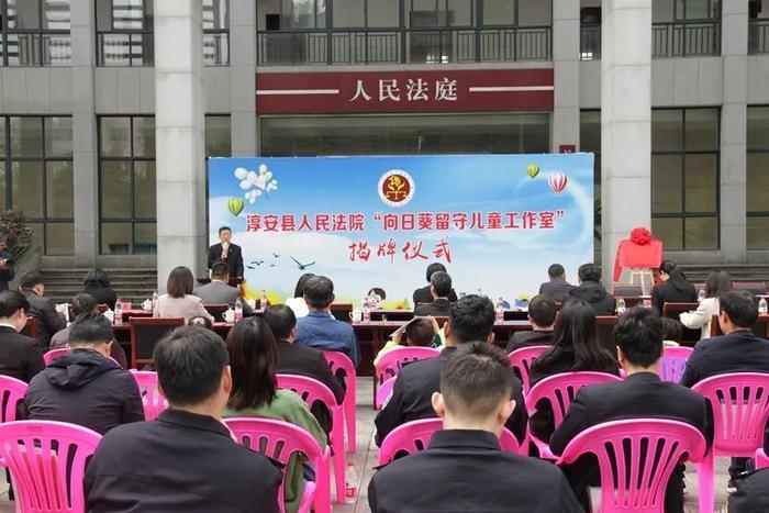 近日,淳安县人民法院在威坪法庭举行“向日葵留守儿童工作室”揭牌仪式。淳安县人民政府副县长方飞燕,淳安县人民法院党组书记、院长张波,杭州市中级人民法院办公室副主任骆萍英,威坪镇党委书记徐建强,威坪镇镇长陈君以及县民政局、教育局、妇联、团县委、关工委等领导应邀出席。