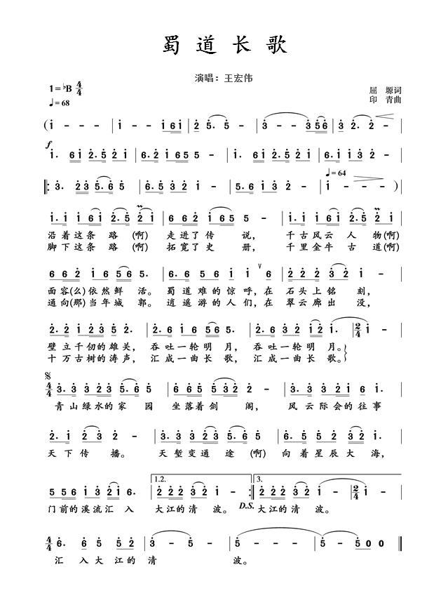 “沿着这条路,走进了传说;千古风云人物,面容依然鲜活……”《蜀道长歌》由中共剑阁县委、剑阁县人民政府出品,著名词作家屈塬与著名作曲家印青联袂创作,著名男高音歌唱家王宏伟倾情演唱,是为四川剑门蜀道打造的一首宣传歌曲。这也是剑阁县第一次发布主题宣传歌曲。