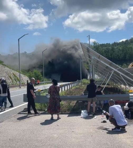 8 月 1 日,有网友称河北承德丰宁县凤山镇附近一高速隧道突发事故。视频显示,隧道口持续有浓密黑烟冒出,有不少人在隧道外不远的路上观望。发布者称疑似有车发生爆炸。