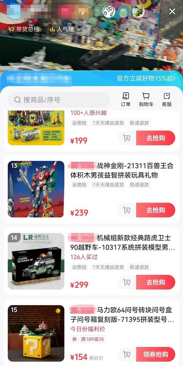 直播间内号称一比一完美复刻原厂积木玩具。上海警方供图