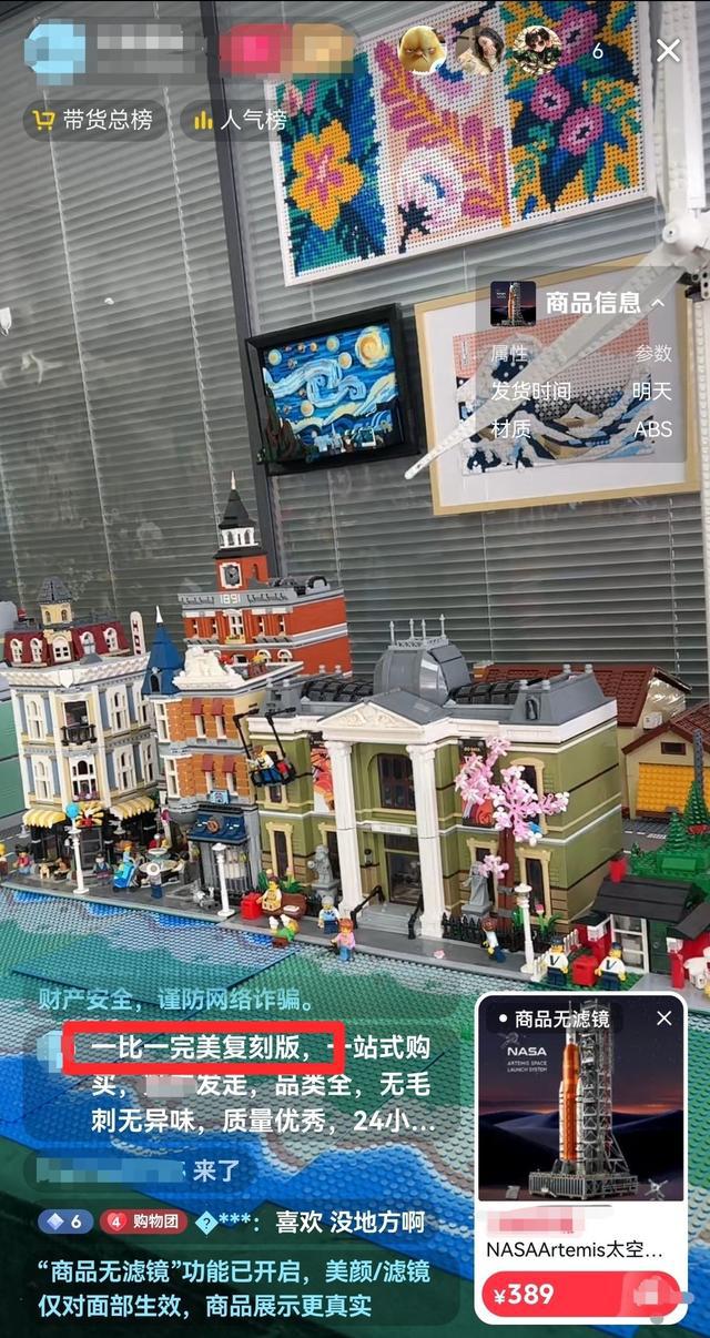 新京报贝壳财经讯(记者俞金旻)抖音直播间内,号称一比一完美复刻原厂积木玩具,镜头内更是被各种仿冒拼装积木布置得满满当当,而价格只要正品的十分之一,你心动了吗?