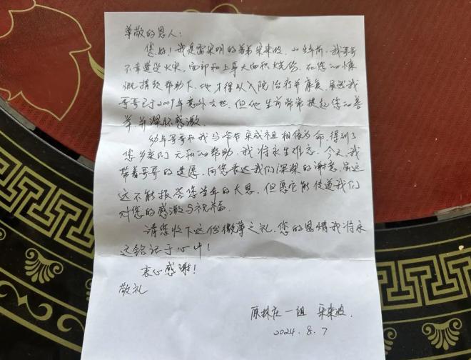 " 今天,我带着哥哥的遗愿,向您表达我们深深的谢意 …… 您的恩情我们将永远铭记于心中。" 宋来波在感谢信中写下了这样的肺腑之言。