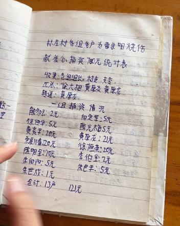 恩情账本详细记录着村民捐款情况