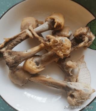 2、鸡架(因为没有现成的鸡架就用鸡腿骨代替)和料酒冷水入锅,焯水捞出,洗净浮沫。