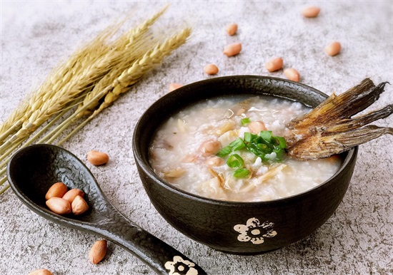 柴鱼花生粥,粥闻着有花生香味,看着是黄白相间的颜色,吃着有淡淡的清甜味,鲜而不腥,乃美味的养生佳品。