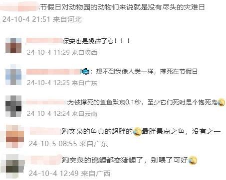 网友纷纷表示:保安也是操碎了心!锦鲤都变猪鲤了,可别喂了!