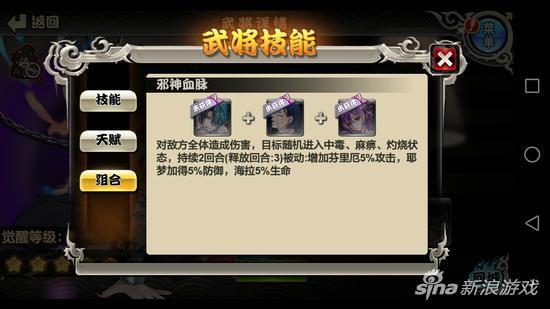 天赋技:怨神邪气,战斗时增加自身暴击率,敌人中如果有奥丁的存在,则额外增加攻击力。