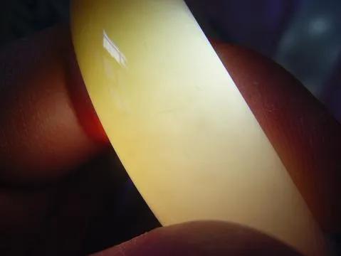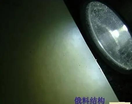 新疆和田玉的内部结构一般都是呈现出纤维交织状结构,很均匀,但是俄料的内部结构是毛颤状的。