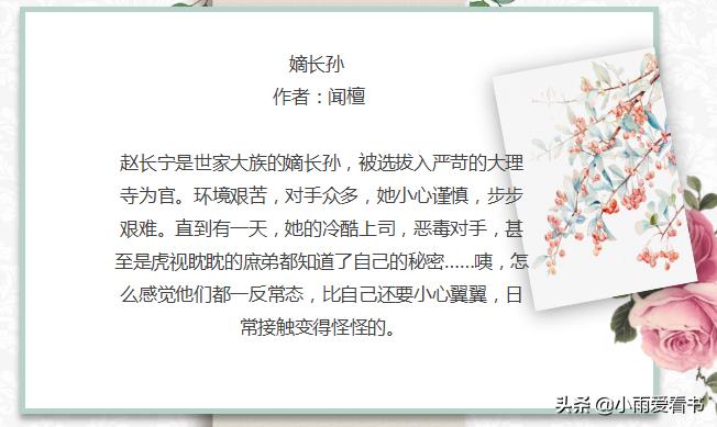 赵长宁是世家大族的嫡长孙,被选拔入严苛的大理寺为官。环境艰苦,对手众多,她小心谨慎,步步艰难。直到有一天,她的冷酷上司,恶毒对手,甚至是虎视眈眈的庶弟都知道了自己的秘密……咦,怎么感觉他们都一反常态,比自己还要小心翼翼,日常接触变得怪怪的。