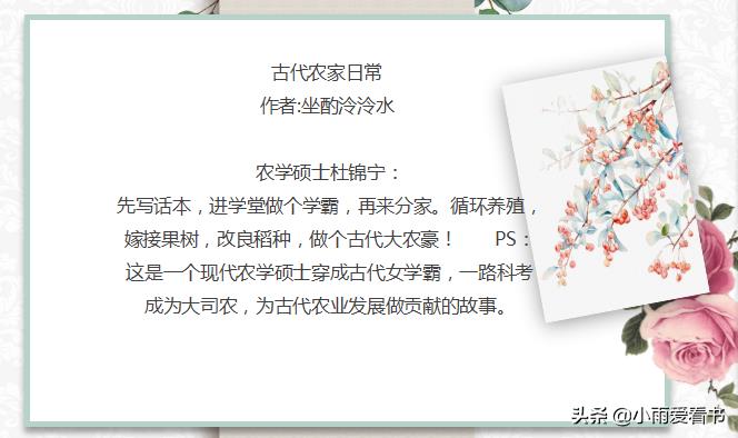 嗨喽!大家好,我是小雨爱看书,长年老书虫,向大家推荐一些精彩小说。大家有什么好文或者想看的文都可以在文章下面留言哦。今天为大家推荐女主穿越古代考科举: