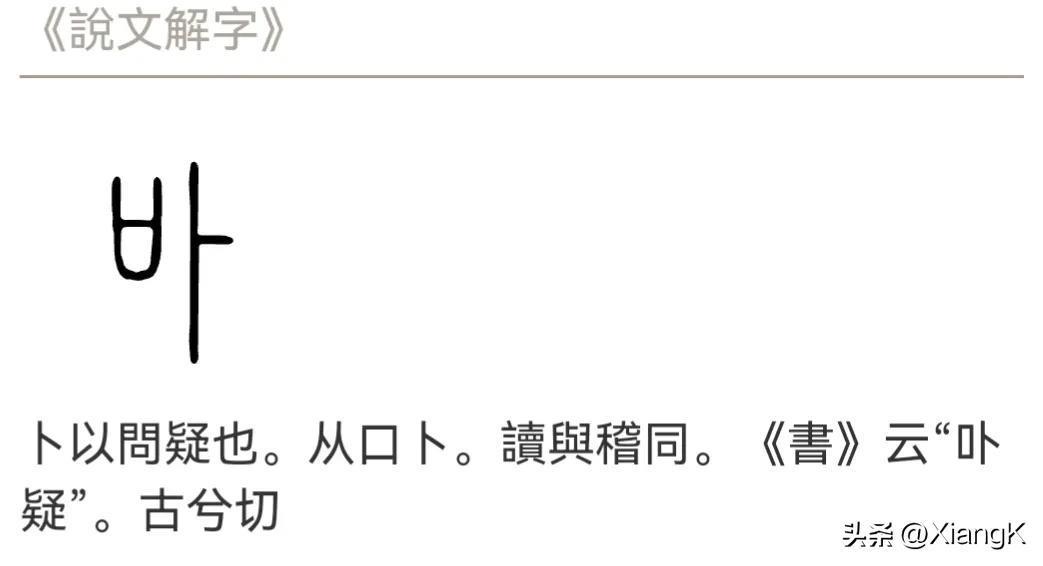 在《说文解字注》中:卜以問疑也。从口卜。讀與稽同。《書》云“卟疑”。古兮切
