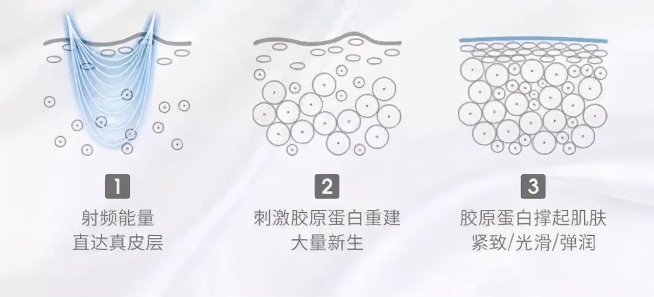 射频就是其实就是一种电流,射频美容的作用原理,就是通过电流的升温作用,来刺激皮肤的真皮层和部分皮下层,激活胶原蛋白与纤维再生,从而实现提拉紧致与抗皱的效果。