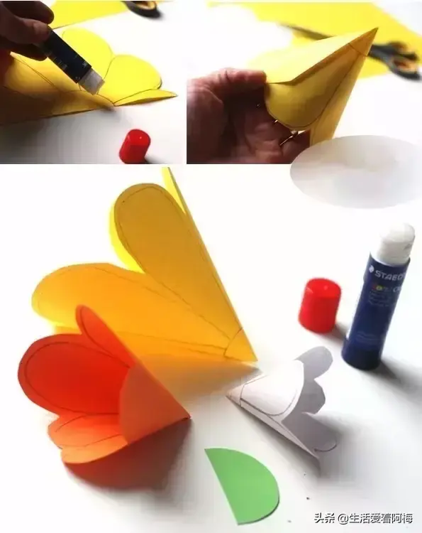 a4卡纸(红色、绿色、黄色)、油性笔、固体胶、剪刀