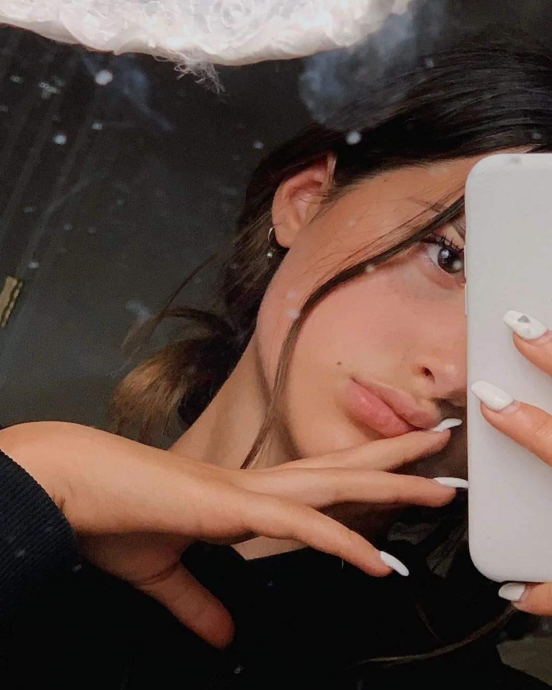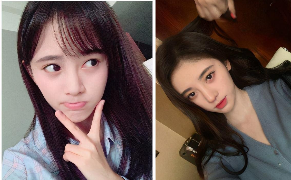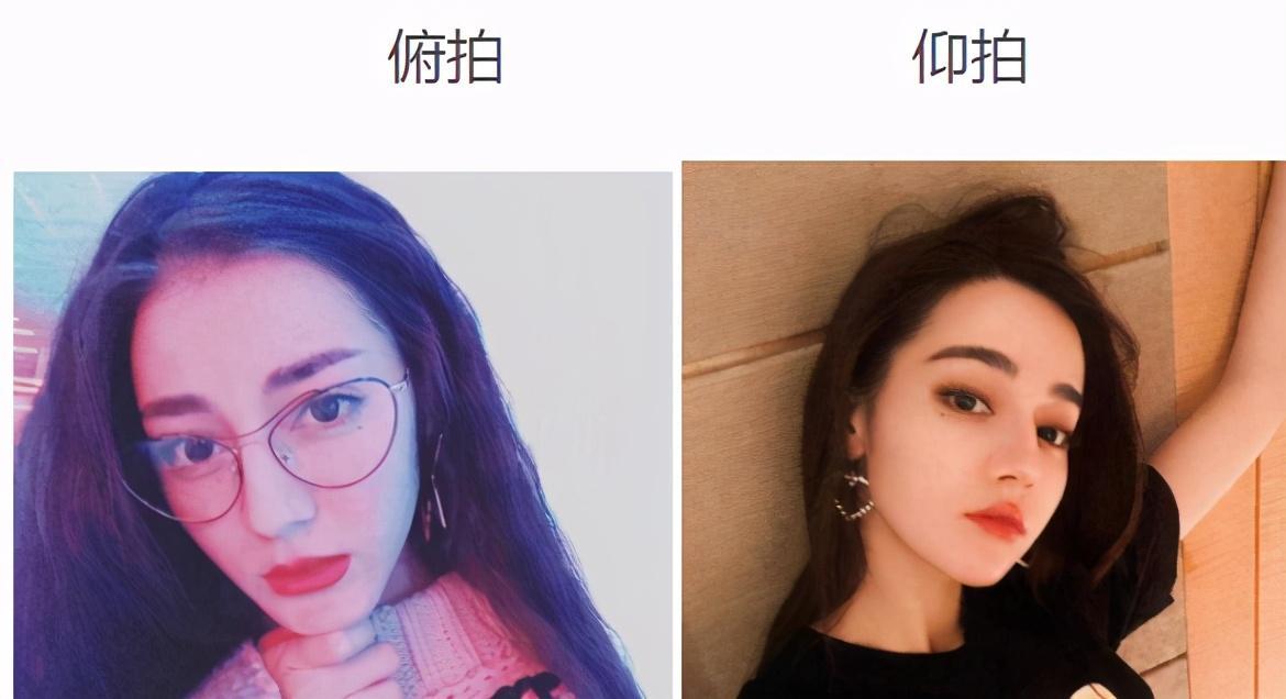 除了笑或者不笑,自拍角度真的很重要。这里拿迪丽热巴这种长脸型的对比来看。从左图上往下的俯拍和右图的从下往上的仰拍。明显俯拍会显得脸更长,而且过近的自拍会显得脸更大。长脸想要自拍好看离得远一点仰拍,摒弃诶找好自己最好看的角度,一般人3/4侧脸会更显得精致好看。