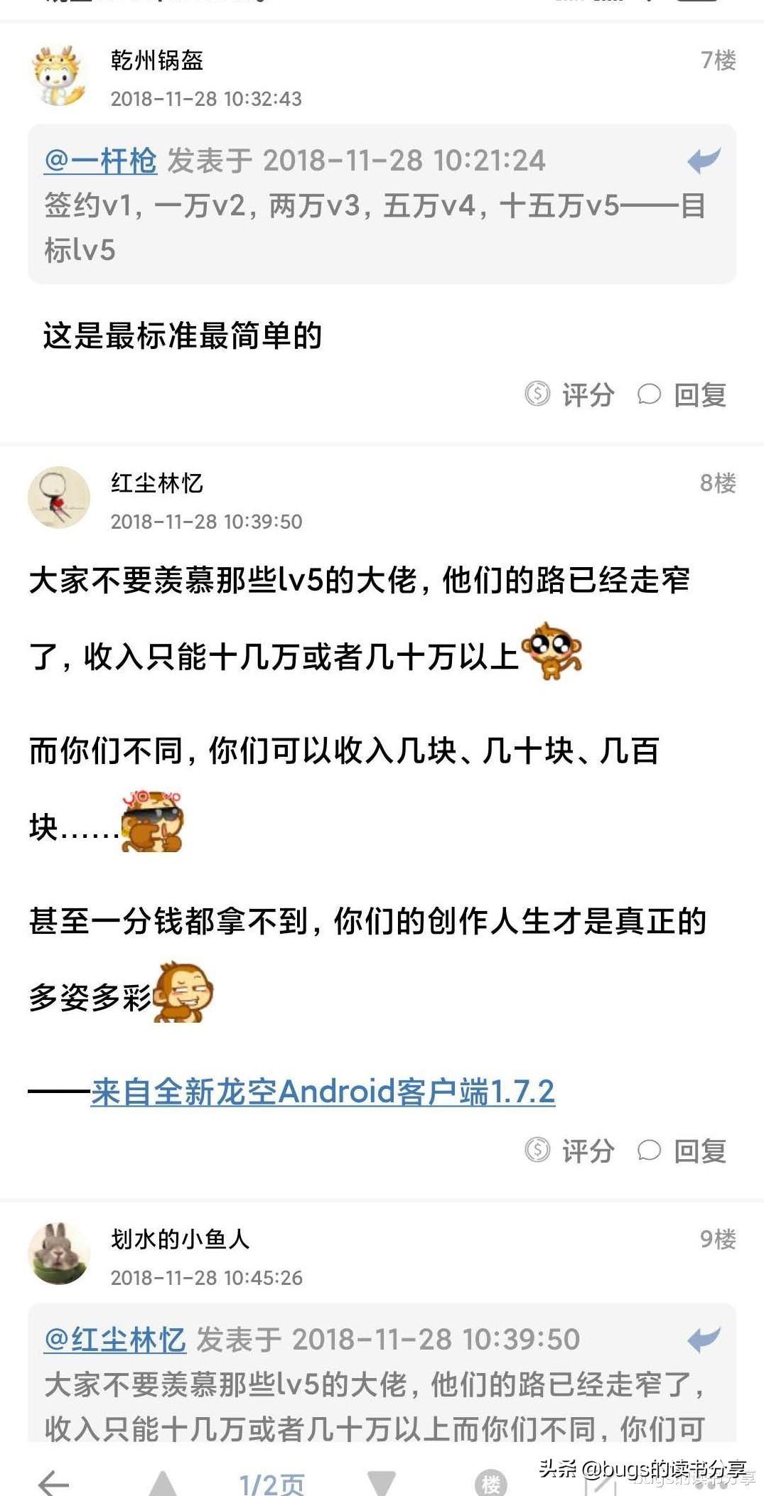 那么新人作者一年内达到Lv5难度到底大不大呢?在笔者的观察中,这种作者其实还是大有人在的,笔者虽然不是很专业,但是还是观察到了这些小说的几个特点,那就是承接网络小说套路+内容轻度创新,可以说的是,尽管网络小说行业如此现实,每年仍然有大量的作者带着梦想前赴后继的加入进来,贡献自己的内容。