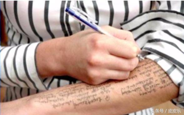 16:考试把题写在手心里,为了不让答案花手都不敢攥;提前去考场把答案用铅笔写在桌子上;把答案复印成最小的字体用胶带粘下来放在水里把粘上的纸洗掉让答案粘在胶带上,把胶带随便粘在胳膊衣服裤子上都看不出来,就这样我通过了大学三年所有的考试。