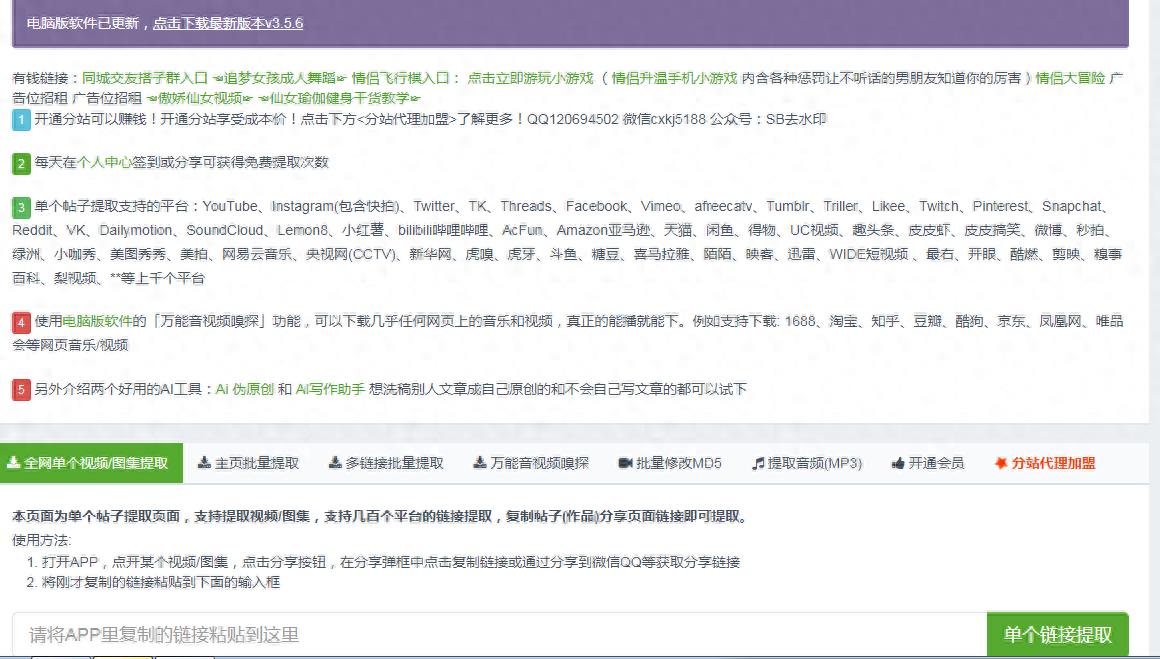 总的来说,去掉抖音的水印并不是一件难事,但是需要注意的是,无论使用哪种方法,都要尊重原作者的权益和平台的规则。在享受抖音带来的乐趣的同时,我们也要做一个有素质、有责任的用户。希望这些小妙招能帮到你,让你在抖音的世界里畅游无阻!抖音、快手、火山、皮皮虾、微视、西瓜、头条、小红书、支持80多个平台无水印批量下载工具,视频去水印在线解析工具-抖音快手视频去水印解析网址:http://www.sbqsy.com(SB去水印很好记)备用网址2: http://zss.hhmvid.com3:公众号:sb去水印(复制网址到浏览器打开,即可无水印批量解析下载视频)点击可以查看高清图。