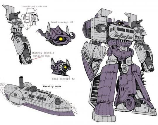 震荡波造型非常特殊,首先他没有在地球接受扫描,所以变形形态还是在赛博坦的样子,一般变形金刚的脸不是像威震天有嘴型就是像擎天柱是面甲型,而震荡波的脸中间就一个灯泡,说话的时候闪啊闪的。2根天线耳朵还会配合一动一动的。