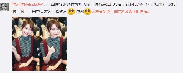 下面隆重介绍一位,SNH48陆婷,饰演曹操。粉丝们已经开始叫她——陆孟德!
