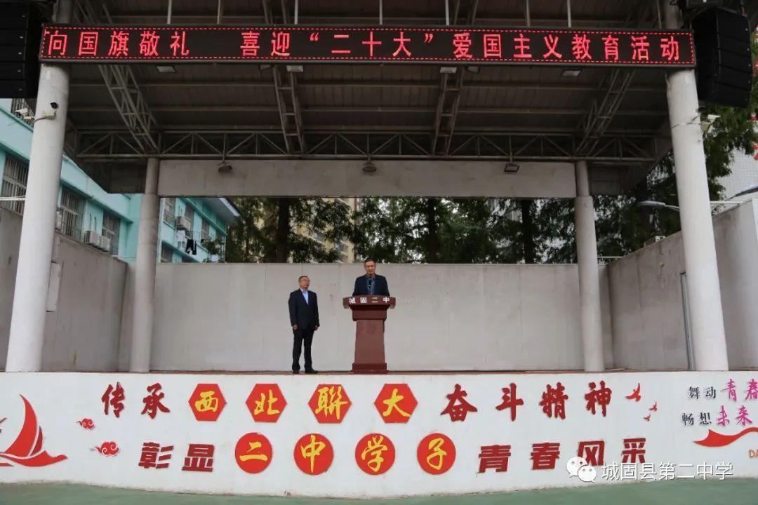 在飘扬的五星红旗下,学校副校长梁永祥做了讲话,他提倡大家要牢记和践行社会主义核心价值观,拥有热忱的爱国情怀,响应党的号召,感悟今天幸福生活的来之不易,扛起时代赋予的崇高使命,不忘初心,牢记使命,发扬筚路蓝缕、奋发图强“西北联大”精神,在新的征程中挥洒青春汗水,脚踏实地,用自己的行动和成绩向“二十大”献礼。