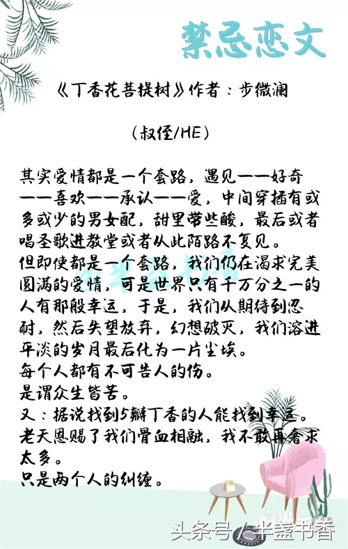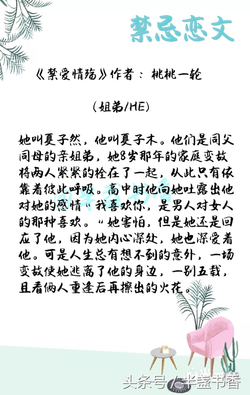 这一期的书单都是禁忌恋文,就是有血缘的,接受不了的宝宝可以看看上一期,上一期书单是伪禁忌恋文,没有血缘的走一波【伪禁忌恋文】,前8本HE,最后一本BE