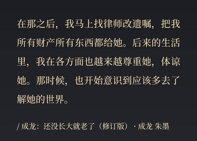 在这件事发生之后,成龙就修改了自己的遗嘱,把所有的财产都给了林凤娇。