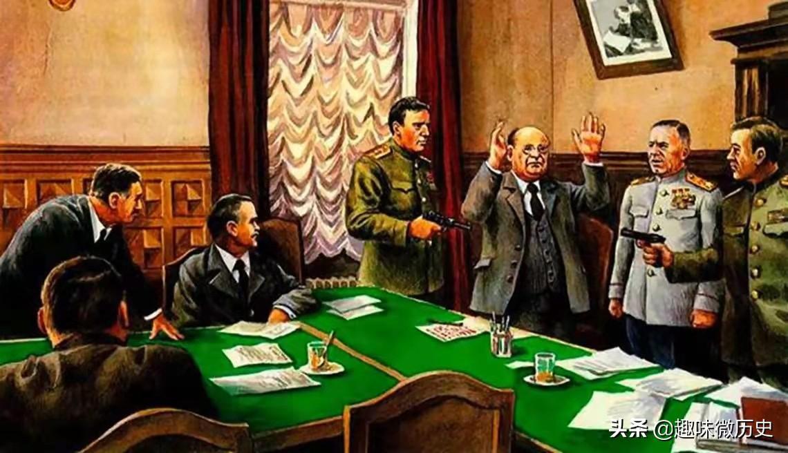 贝利亚在答话时,打开了公文皮包,像是伸手进去敢出为自己辩白的文件。但是,他拿出来的不是文件,而是一支乌黑的手枪。坐在他身旁的赫鲁晓夫非常机警,立即用左手竭力将贝利亚的手按在桌上,同时用一只手将枪管扳向天花板。就在这一瞬间,马林科夫急按桌下电铃,门扉大开,莫斯卡连科将军手持冲锋枪,领着几名高级军官冲了进来。当他看准开枪不会伤害别人时,就对着贝利亚来了一个齐射,结束了贝利亚的生命。