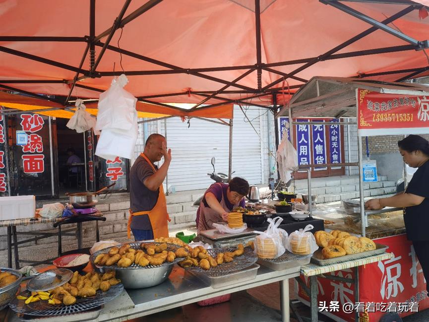 汾城的一些小吃也有特色,如油粉饭、炸糕、凉粉等,炸糕有白面的,也有粟子面的,另外这里的烧饼也是很有名的。我们在汾城买了烧饼、炸糕还有卤肉,鼓楼旁有家卤肉店,味道不错,肉烂而不咸不腻,挺好。