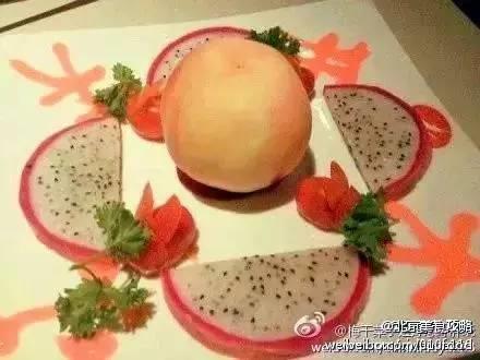 “朋友的朋友去海底捞的时候包里带了一个桃子,拿去让服务员洗一下准备饭后享用,回来就成了这样。。。”还写了个天天开心。。。。