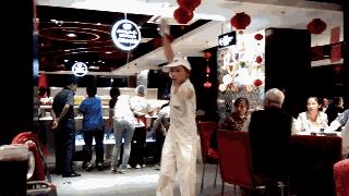 抻面是很多海底捞老客户必点的食物,不为了吃,就为了看。年轻的师傅会把4元一根的抻面舞得像艺术体操的缎带,还不时抛向某个客人,表演欲极强。