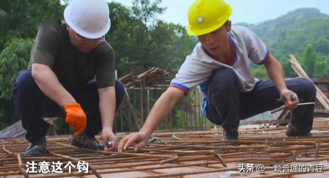 何兴平见王均金从来没操作过,就很耐心的给他讲解如何扎钢筋,慢动作讲解,只需要用一根裁剪好的钢丝,捆住两条十字相交的钢筋,然后用手上的铁钩将钢丝扎紧就可以了。