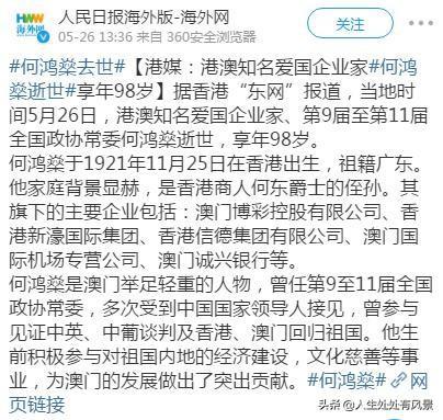2020年5月26日,澳门“赌王”何鸿燊(shēn)在香港养和医院离世,享年98岁。一代传奇,至此落幕。