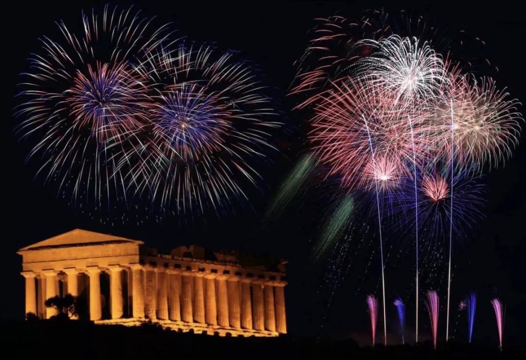 希腊的1月1日是新年。新年夜(12月31日),希腊人欢聚一堂吃家宴。12点钟声响起,人们会聚集在自家花园、阳台、公共广场、海滩或是山上,观看迎新烟花。如果在农村或城外,特别是在比雷埃夫斯港,当雅典的城市绽放烟火的时候,所有停靠的船只同时鸣笛。