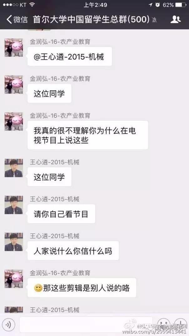 王心遴在韩国留学群发的信息,说是节目恶意剪辑......