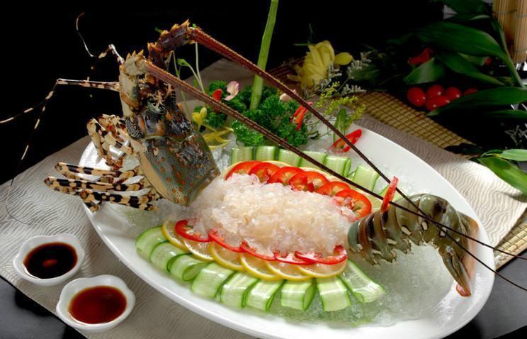 龙虾刺身的制作方法是将活龙虾取出肉后冷冻,再片成薄片,放在铺有冰渣的盘中,另将龙虾头和尾煮熟摆在盘的两端,搭配蘸料即可食用。其造型美观大气,能够提升整桌菜的档次。口味也爽滑鲜美,且营养丰富,是不可错过的一道刺身。