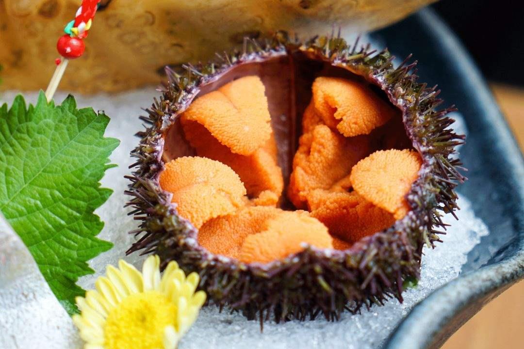 完整的海胆黄上淋上柠檬汁、生抽、辣芥酱,再轻轻摇匀海胆,让调味汁充分浸透海胆四周,再用小勺舀着吃,口感爽滑,味道鲜美。相信尝过一次的朋友们都再也无法舍弃这一道美味!